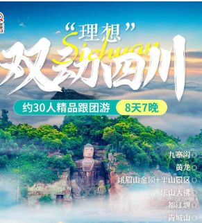 - 【理想四川】动车进九寨沟、都江堰、黄龙、峨眉山、乐山大佛、熊猫基地、三星堆/金沙遗址8日游 推荐 特价 热卖 新品 团购