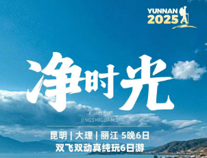 - 【净时光】昆明大理丽江双飞双动纯玩5晚6日游 12成人小团 推荐 特价 热卖 新品 团购