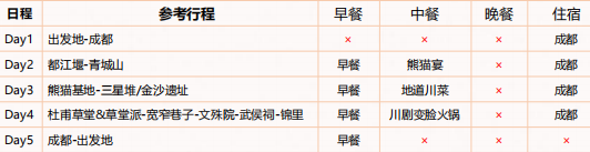 5. 如您的时间充裕,可在自由活动时间前往游览成都文化地标(武侯祠、锦里、杜甫草堂、宽窄巷子、春熙路、太古里等)、品尝成都特色小吃(担担面、夫妻肺片、龙抄手、韩包子、钟水饺、三大炮、赖汤圆、九尺板鸭等)。
