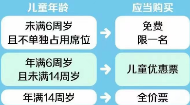 随同成年人乘车的儿童,年满6周岁且未满14周岁的应当购买儿童优惠票;年满14周岁,应购买全价票。