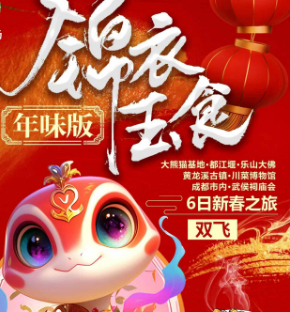 大熊猫基地·都江堰·乐山大佛 黄龙溪古镇·川菜博物馆 成都市内·武侯祠庙会 6日新春之旅